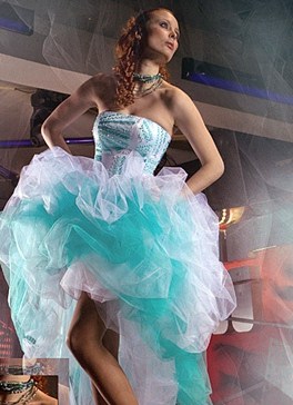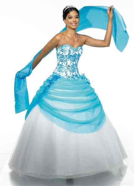 Ang isang mahaba, luntiang damit ng kulay ng turkesa ay nababagay sa mga batang babae na mas gusto ang damit ng isang prinsesa at nais na makaakit ng higit na pansin sa kanilang sarili, dahil ang gayong sangkap ay tiyak na humanga sa lahat.